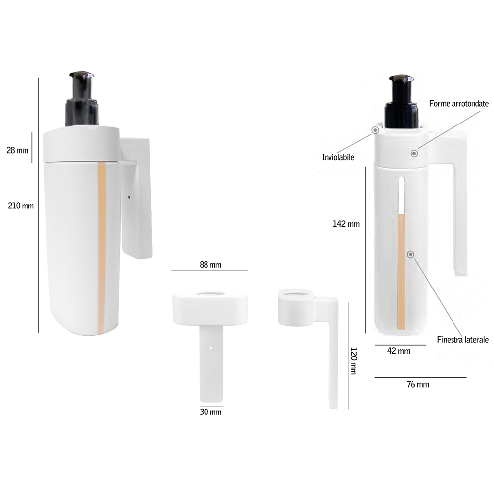 La staffa, in abs bianco, viene fornita separatamente (si può estrarre la bottiglia con una chiavetta a pressione)