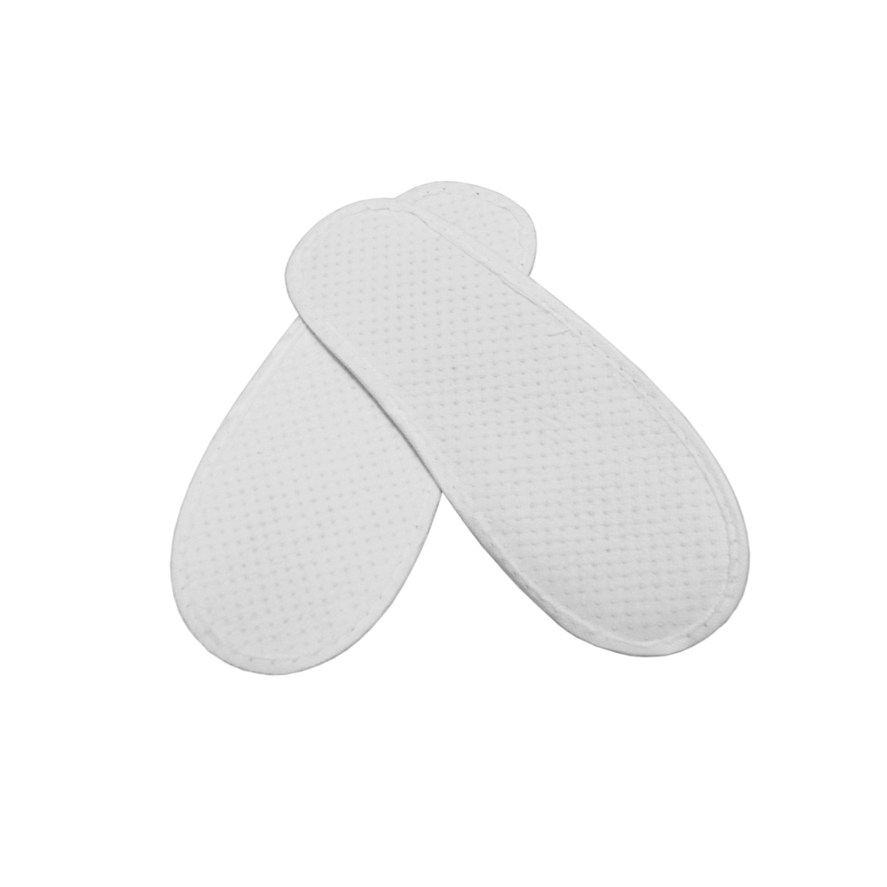 La pantofola OSLO BASIC chiusa in poliestere con suola da 3 mm in cartone e bordino in TNT è la soluzione ideale per offrire ai tuoi ospiti comfort e igiene durante il soggiorno.