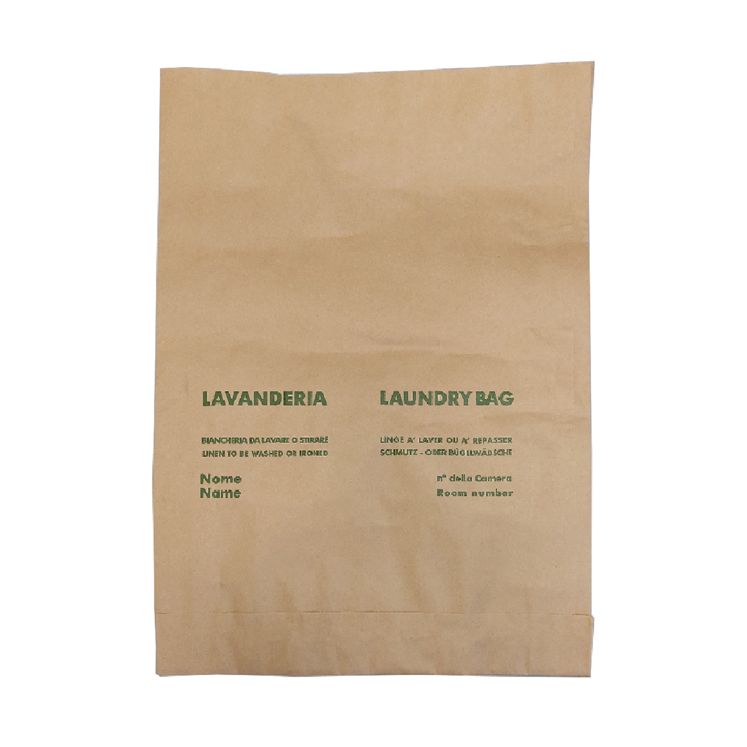 Pratico, resistente e sostenibile: il sacco biancheria in carta kraft avana è la soluzione ideale per hotel, B&B, strutture e ricettive.. Realizzato in carta kraft di alta qualità stampata a 1 colore, è dotato di soffietto laterale per una maggiore capienza e di un bordo superiore da 5 cm per una chiusura agevole.